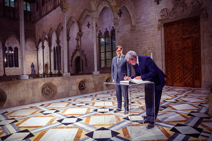 El president de la Generalitat de Catalunya, Salvador Illa, i el president de Canàries, Fernando Clavijo, han reafirmat aquest dimecres la seva aposta per la política útil i pel diàleg entre administracions per a donar resposta als reptes compartits. Amb aquest objectiu, durant la reunió mantinguda en el Palau de la Generalitat, Clavijo i Illa han acordat una declaració conjunta de col·laboració en matèria de recerca i innovació; turisme sostenible i cooperació amb els països d'origen de la migració.