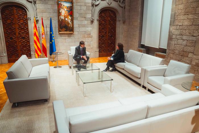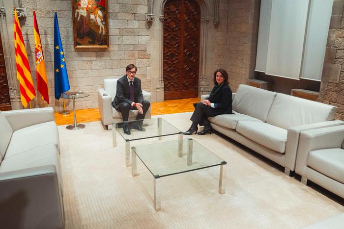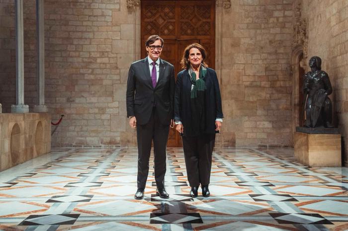 El president de la Generalitat, Salvador Illa, acompanyat pel conseller d’Agricultura, Ramaderia, Pesca i Alimentació, Òscar Ordeig, s’ha reunit avui amb la vicepresidenta Executiva de la Comissió Europea, Teresa Ribera, per abordar la situació que afronta la pesca mediterrània i avançar cap a una resposta conjunta que asseguri el futur del sector.